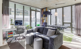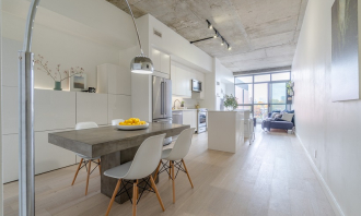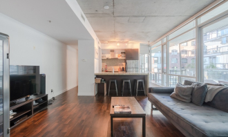 Scandinavian Chic Renovated, modern loft at the Pure Spirit. Located in the historic Distillery District. Approx. 764 sf. featuring 1 bedroom + den,...