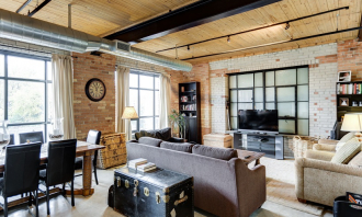 Bohemian Rhapsody Broadview Lofts. Authentic loft conversion showcasing exposed brick, post & beam, lofty wood ceilings, polished concrete floors,...